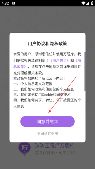 1、打开应用查看协议点击同意并继续。