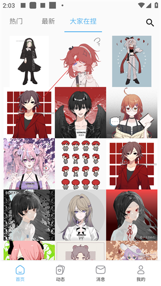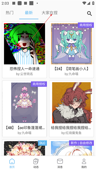 1、在应用首页可切换“热门”“最新”“大家在捏”标签,浏览不同分类下的捏人作品,获取创作灵感。