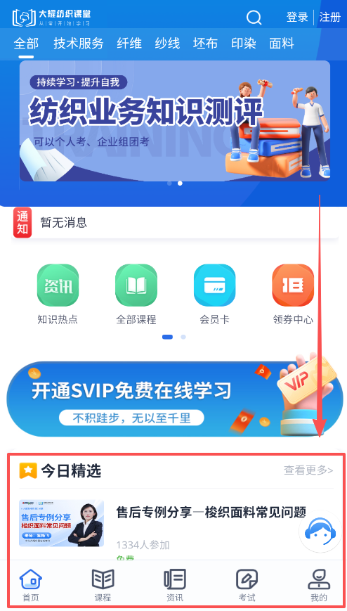 大耀纺织课堂致力于为纺织行业从业者提供专业学习平台。用户可随时选择自己感兴趣的课程进行学习,迅速掌握各类纺织知识与技能。同时,平台提供课后习题练习,以帮助检验学习效果并夯实基础,学习之余也能获取丰富的行业资讯,保持对纺织前沿动态的关注。