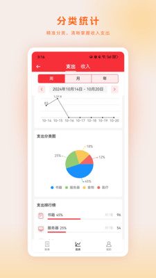 3、在分类统计功能界面中,用户能够清晰直观地观察自己的收支情况。