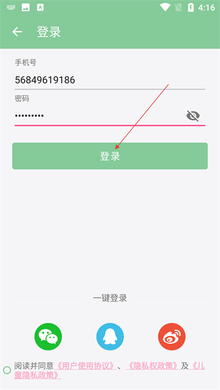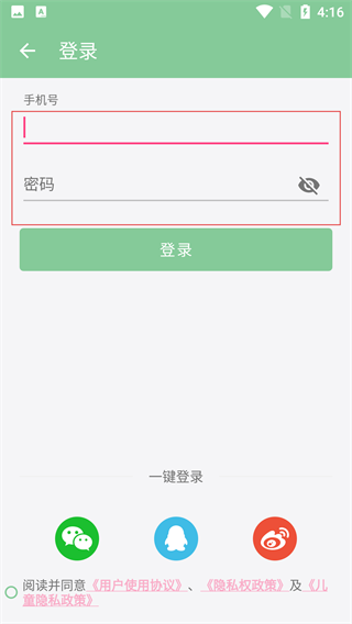 3、在登录页面,依次输入手机号和密码,勾选阅读并同意相关协议。