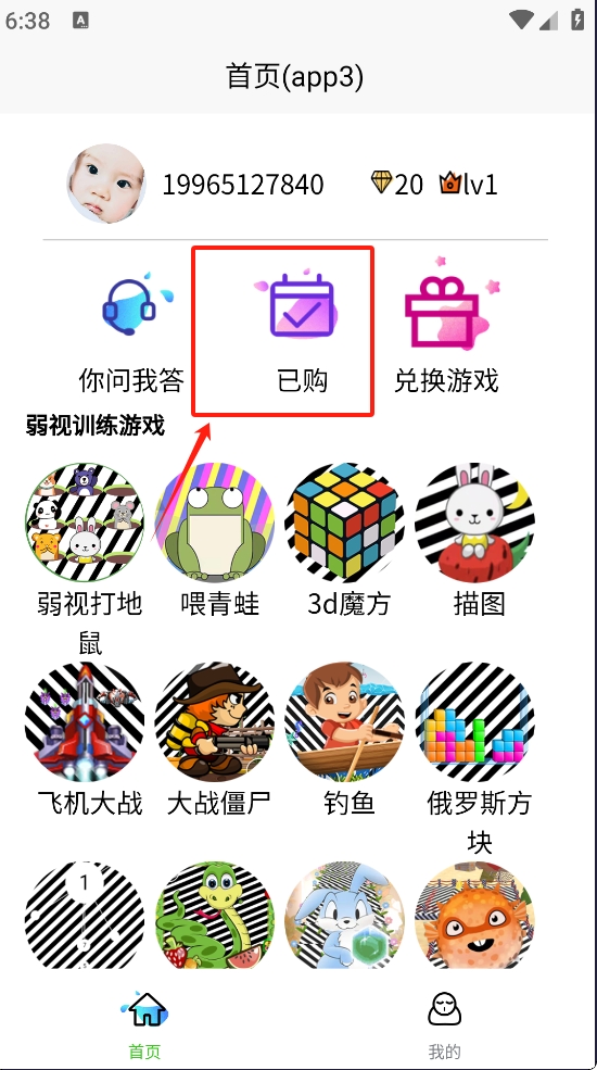2、点击“已购”查看购买。