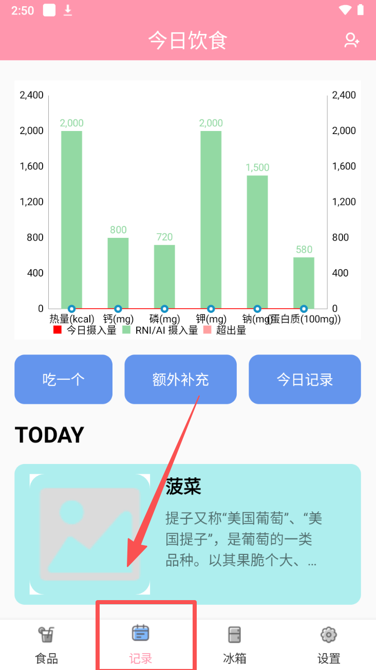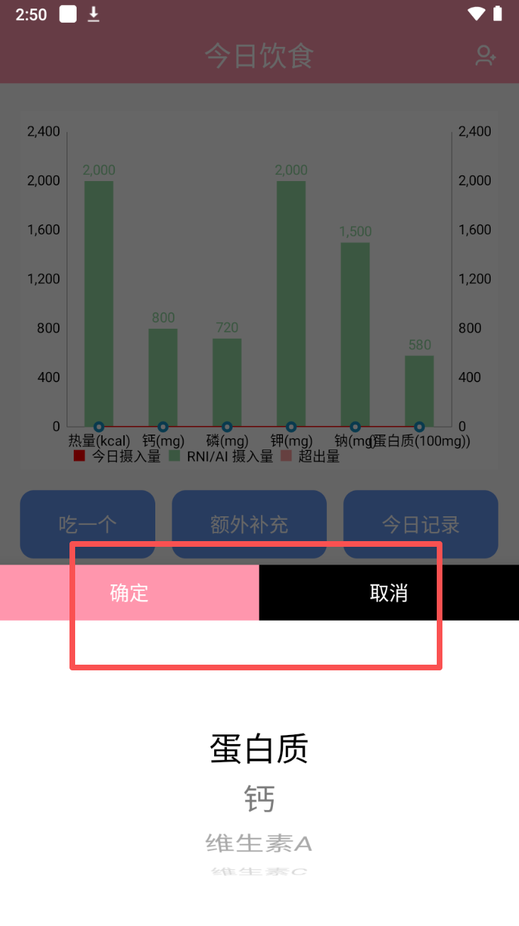 2、在“今日饮食”页面点击“确定”以保存您的饮食记录。