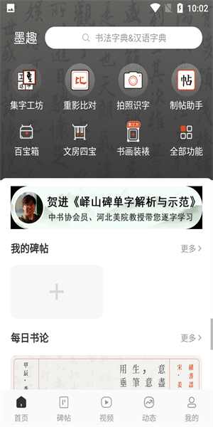 墨趣书法最新版本收录了大量碑帖图片,众多知名书法家的作品可供浏览,且持续更新更多作品资源。用户既能欣赏这些经典名作,也能借鉴其笔法进行临摹创作。在社区板块,用户可以查看其他用户分享的书法内容,也能回顾自己的书法记录,助力提升学习进度。此外,平台还提供丰富的免费课程,用户可随时获取专业讲解,同时也能参考各类不同风格的书法作品。