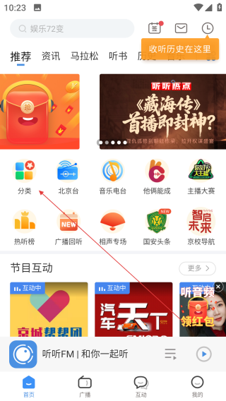 1、打开听听FM北京广播电台,点击【分类】。