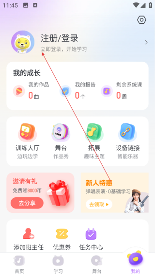 3、家长辅助功能完善:家长可通过【成长档案】查看孩子学习进度,获取专业老师建议,参与亲子音乐活动,共筑家庭艺术氛围。