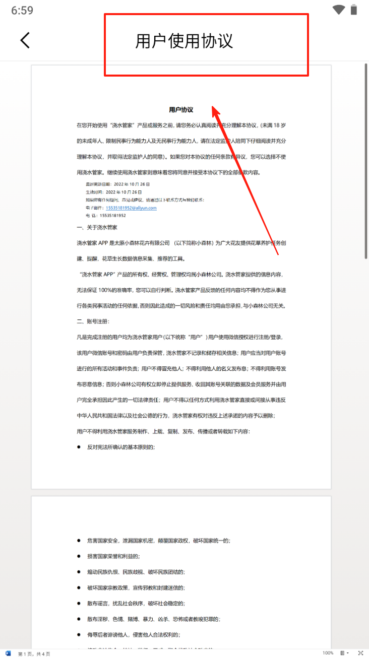 2、仔细阅读《用户使用协议》内容,了解权利和义务,然后点击返回。