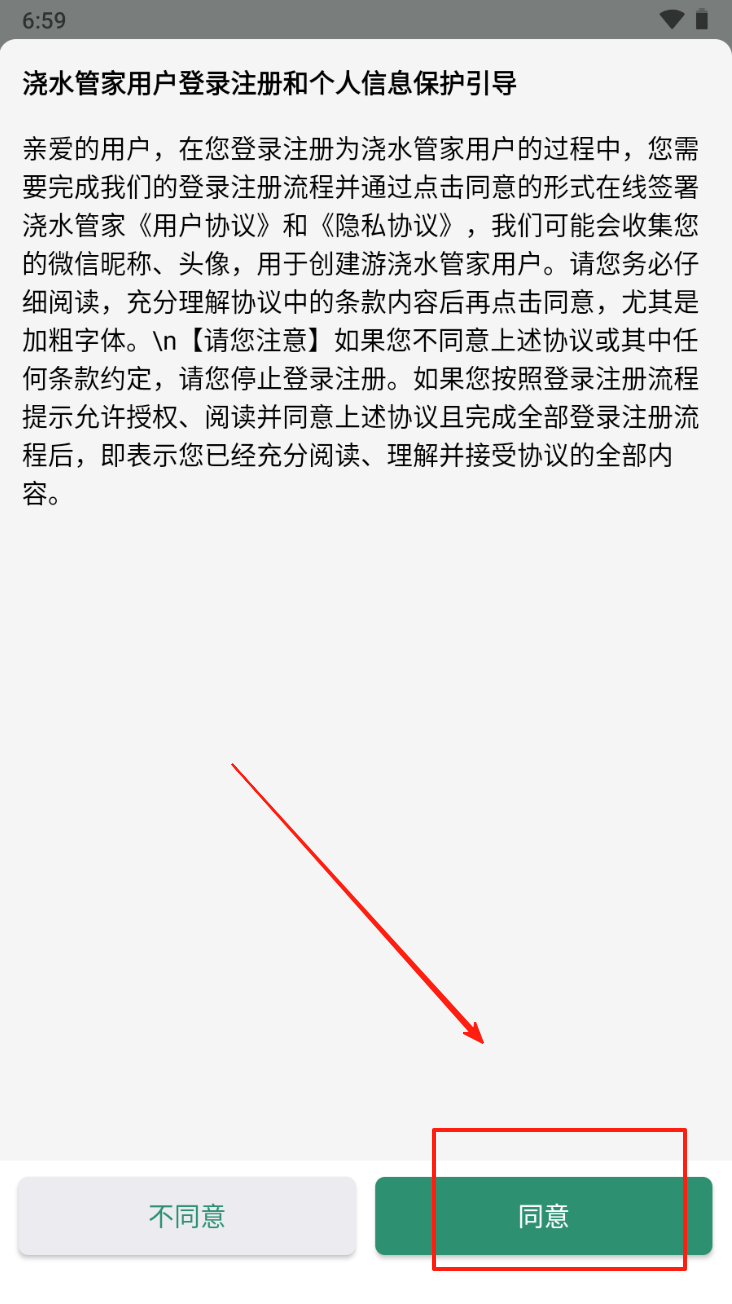 1、阅读并同意《用户协议》和《隐私协议》,点击“同意”按钮继续。