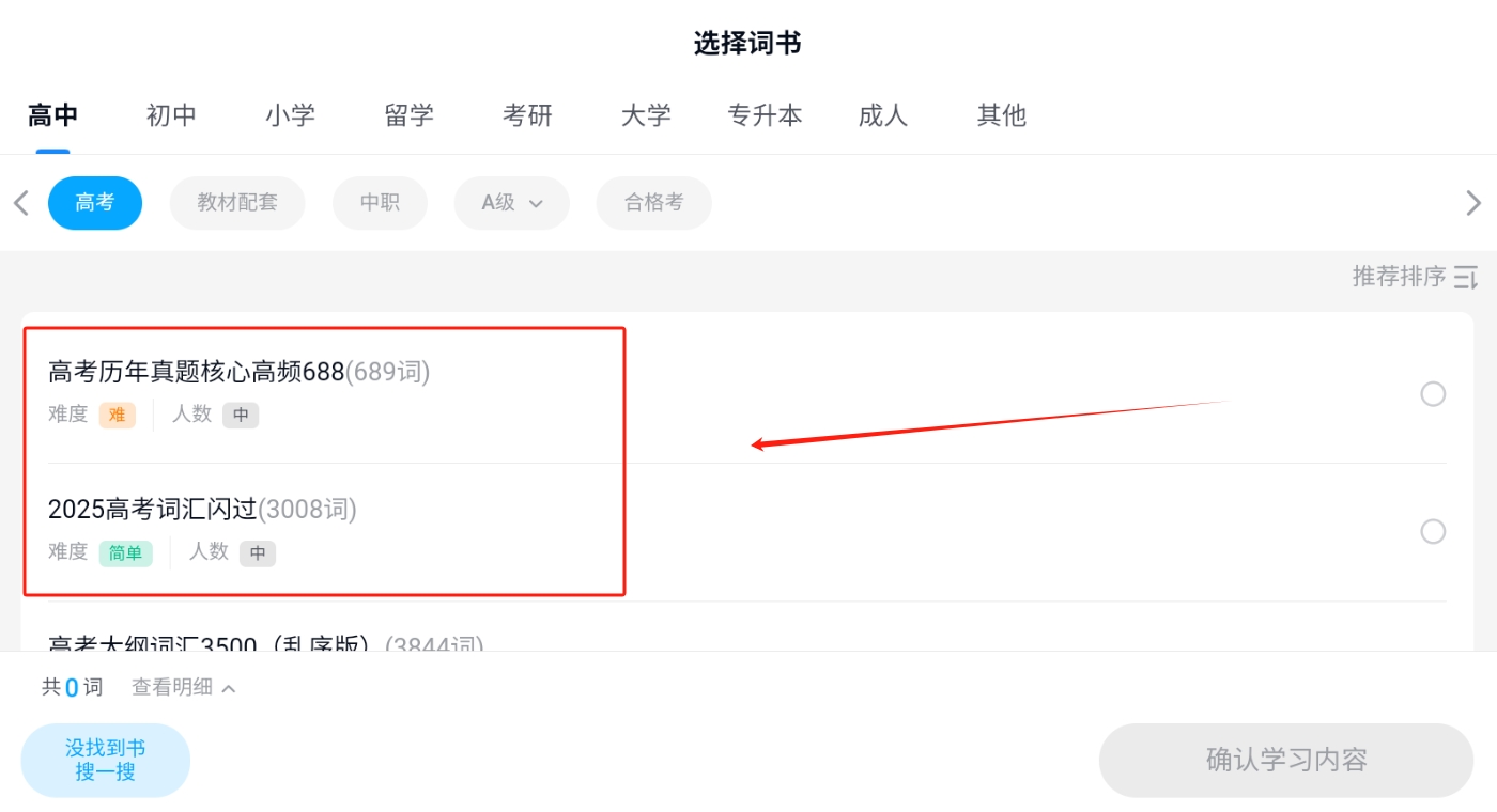 1、定制学习词书,,制定个性化词书,通过有的放矢的方式提高记忆效率与备考实力。