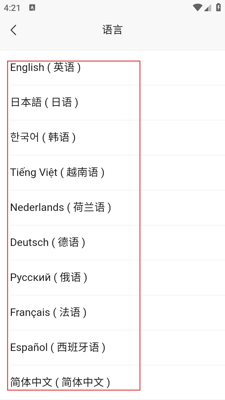 4、语言设置页选对应语言,如【简体中文】,可调整应用语言显示。