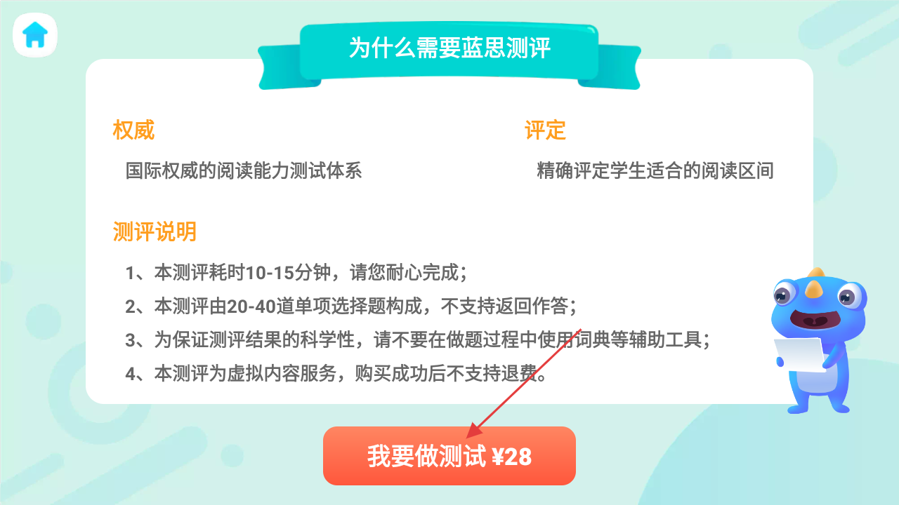 3、在蓝思测试介绍页面,了解测评相关信息后,点击【我要做测试¥28】按钮。