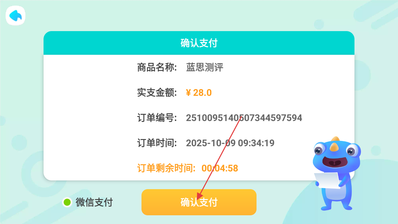 4、进入确认支付页面,核对商品名称、实支金额等信息后,点击【确认支付】按钮完成支付。