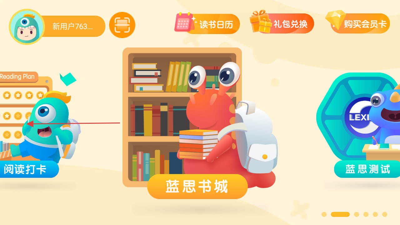 1、在新东方小书童主界面,可看到【阅读打卡】【蓝思书城】等功能,根据需求选择操作。