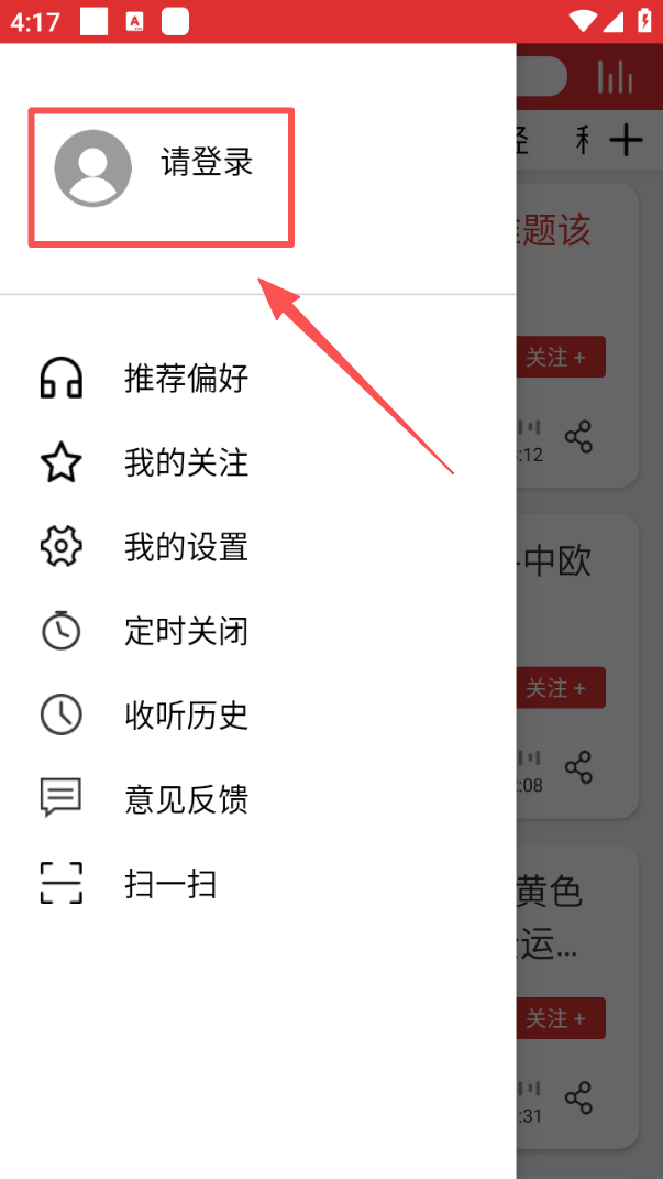 4、点击界面左上角的头像,在弹出的侧边栏中,可进行登录操作以使用更多功能。
