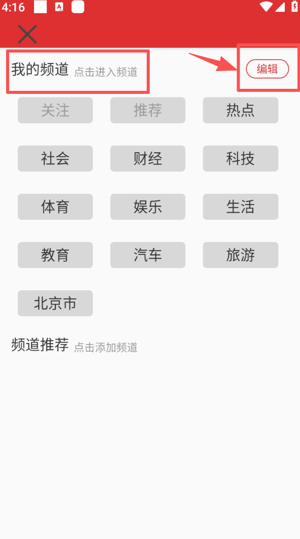 2、进入频道管理页面,找到 “我的频道” 区域,点击 “编辑” 可对频道进行调整。