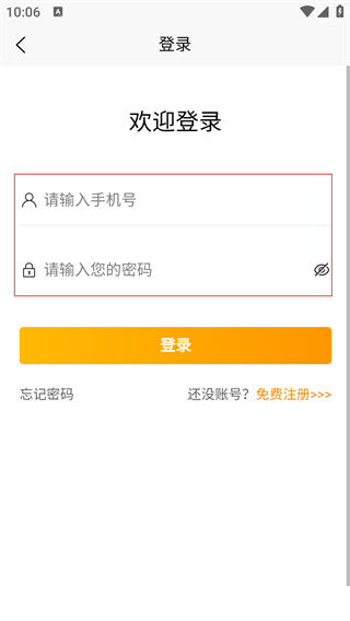 4、在登录页面,依次输入已注册的手机号、对应的账号密码,点击【登录】按钮,完成账号登录,即可使用个人相关功能。