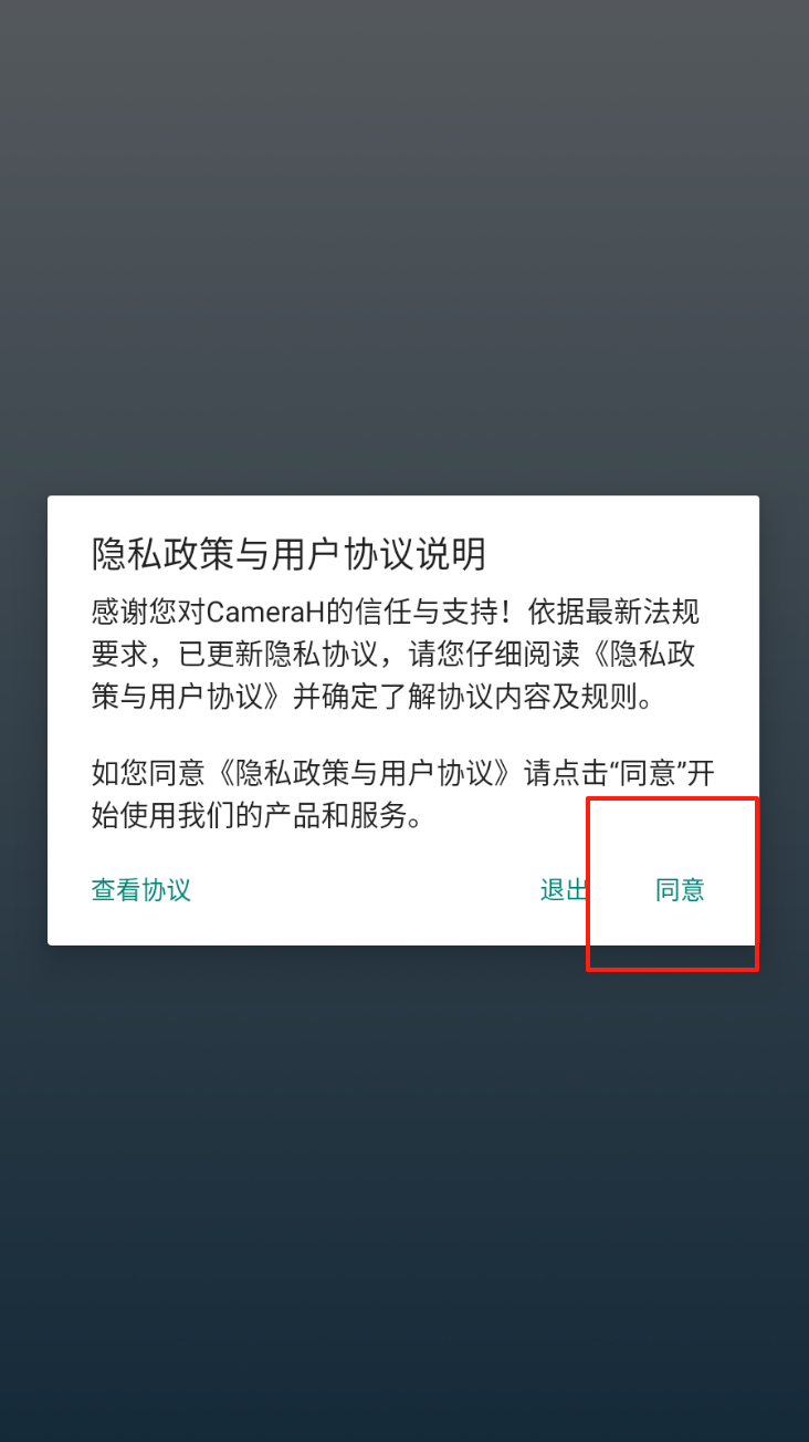 1、同意隐私政策。阅读并同意应用的隐私政策与用户协议,点击“同意”按钮以继续。