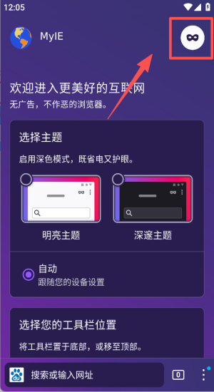 3、点右下角隐私标签页图标,无痕模式即刻开启不留痕迹。