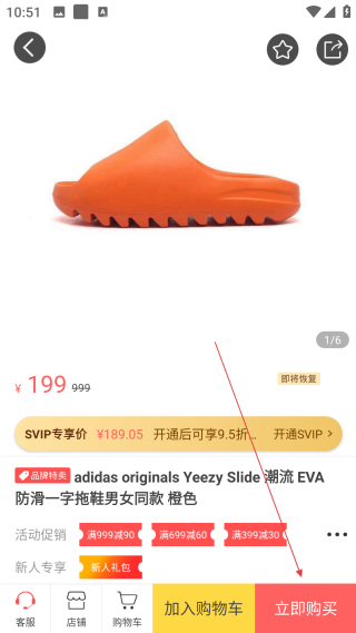 4、在商品详情页,点击【立即购买】按钮,即可进入该商品的购买流程操作。
