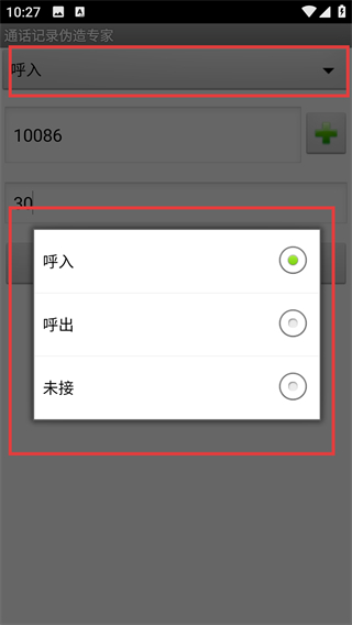 1、打开应用后,点击【呼入】下拉框,在【呼入】【呼出】【未接】这几个选项里挑选你想要设置的通话类型即可。