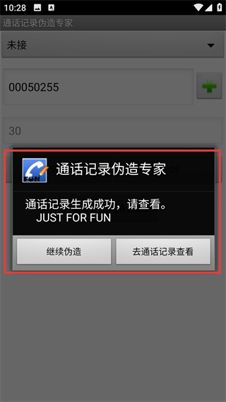 4、看到【通话记录生成成功】提示后,点【继续伪造】可添加新记录,点【去通话记录查看】可验证结果哦。