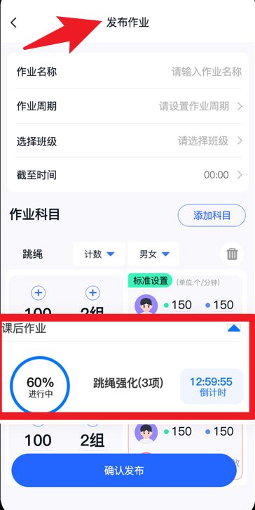 1、在作业发布界面,教师能够依据班级实际状况安排各类课后作业,系统会自动对完成进度和倒计时进行统计,助力教师实现高效管理。
