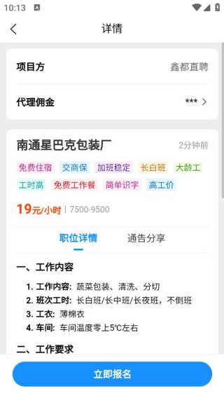 4、点击岗位,去查看详情内容,感兴趣的话,点击立即报名。
