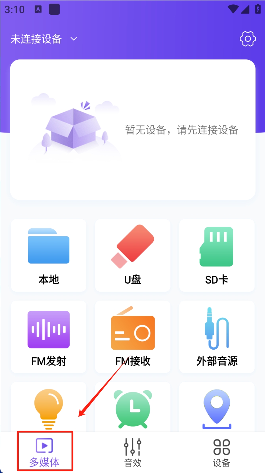 3、探索精彩多媒体功能,在多媒体页面通过连接设备可访问本地音乐,点击相应的图标,即可管理文件。