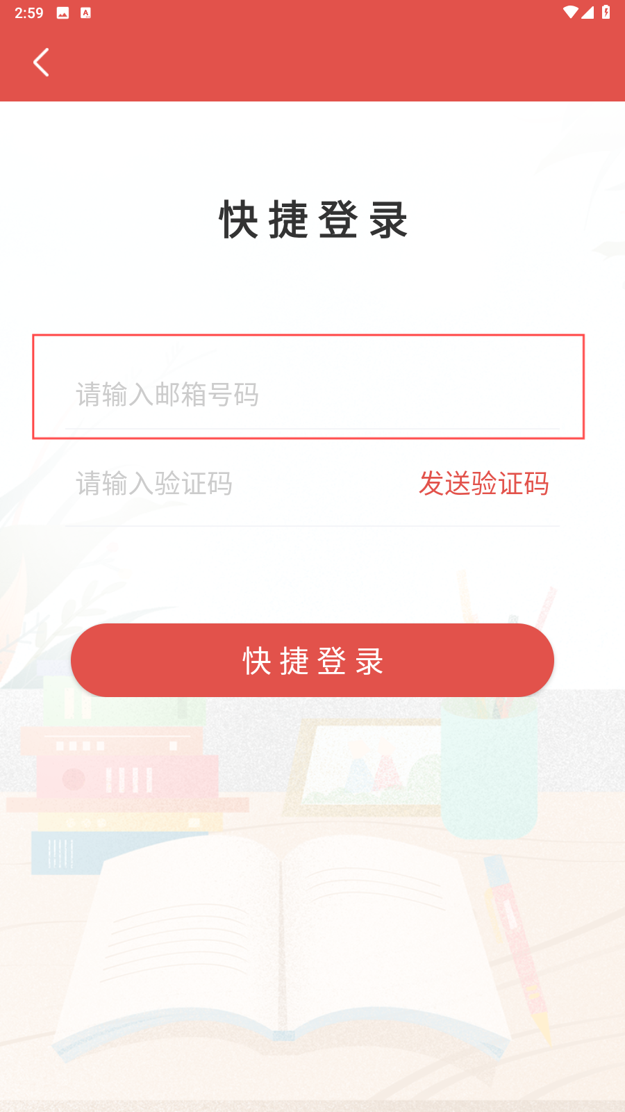 1、打开应用,填写电子邮箱。