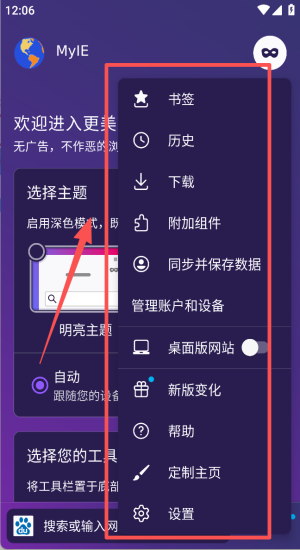 1、首次打开选明亮或深色主题,自动跟随系统省电护眼一步到位。