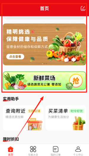 1、首先在应用商店搜索生鲜优惠买菜,下载安装后打开,完成注册以便享受更多服务。