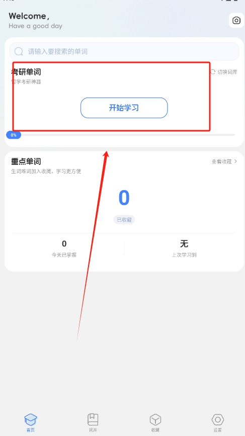1、打开万词通,注册或登录后系统会为你推荐合适的学习计划,帮助你搭建有效的学习框架。
