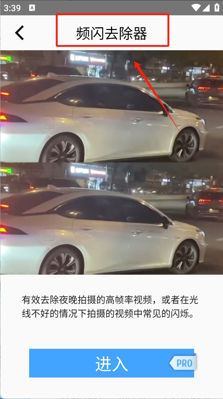 3、最后,选择“频闪去除器”功能。有效去除视频中的闪烁,提升夜间拍摄效果。