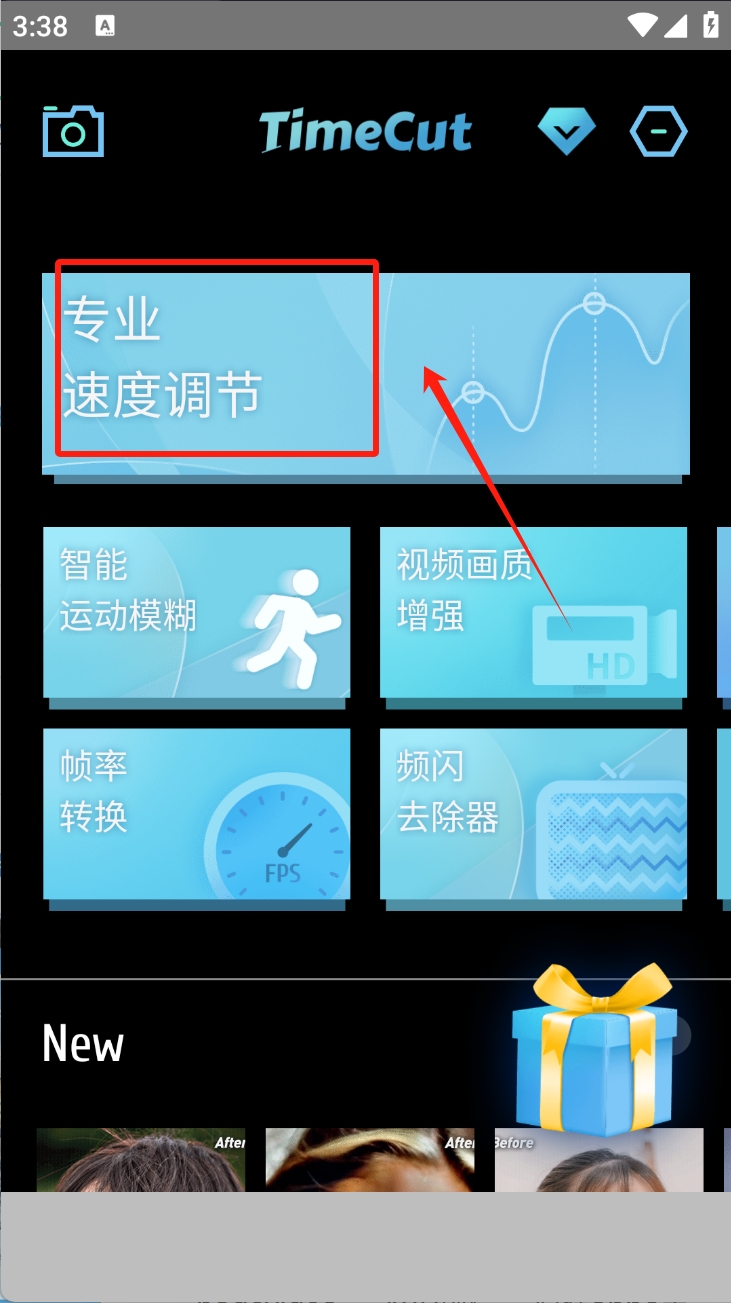 1、首先,打开TimeCut应用并选择“专业速度调节”功能。这将允许您调整视频的播放速度。
