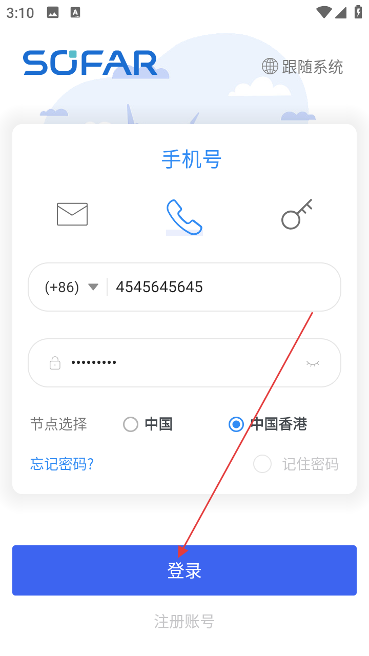 4、填好手机号和密码,确认节点后点击【登录】按钮完成操作。