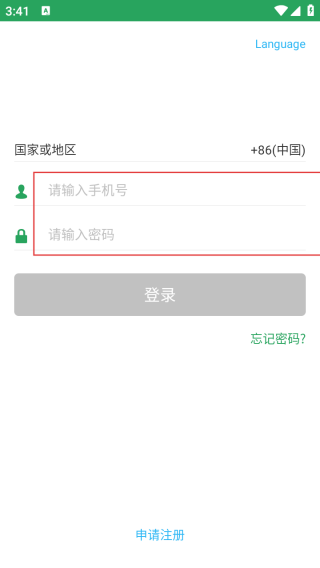 2、进入登录界面输入手机号和密码。