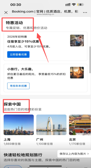 3、点“2026年初特惠”活动,4月前入住可享至少15%房价折扣。