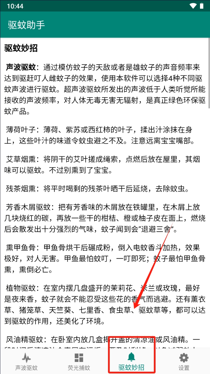 3、在“驱蚊妙招”页面查看更多驱蚊方法,选择适合您的方法进行驱蚊。