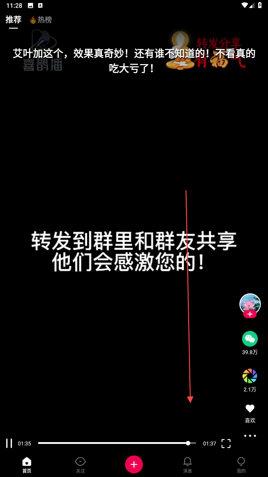 3、手指【下滑】即可查看下一个视频。