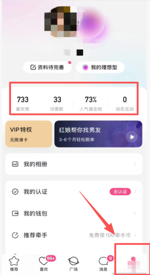 4、完善个人资料并完成认证,领取100牵手币,开启红娘牵线服务。