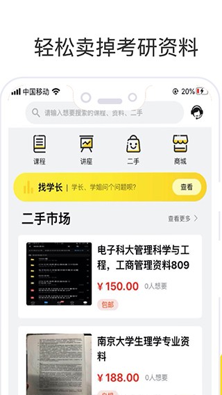 1、真实上岸学长资源共享:找学长app汇聚全国各高校已录取研究生的学习笔记、备考资料和真题解析,所有内容均由实名认证学长上传,确保资料的真实性和实用性,帮助考研学子获取第一手复习资源。