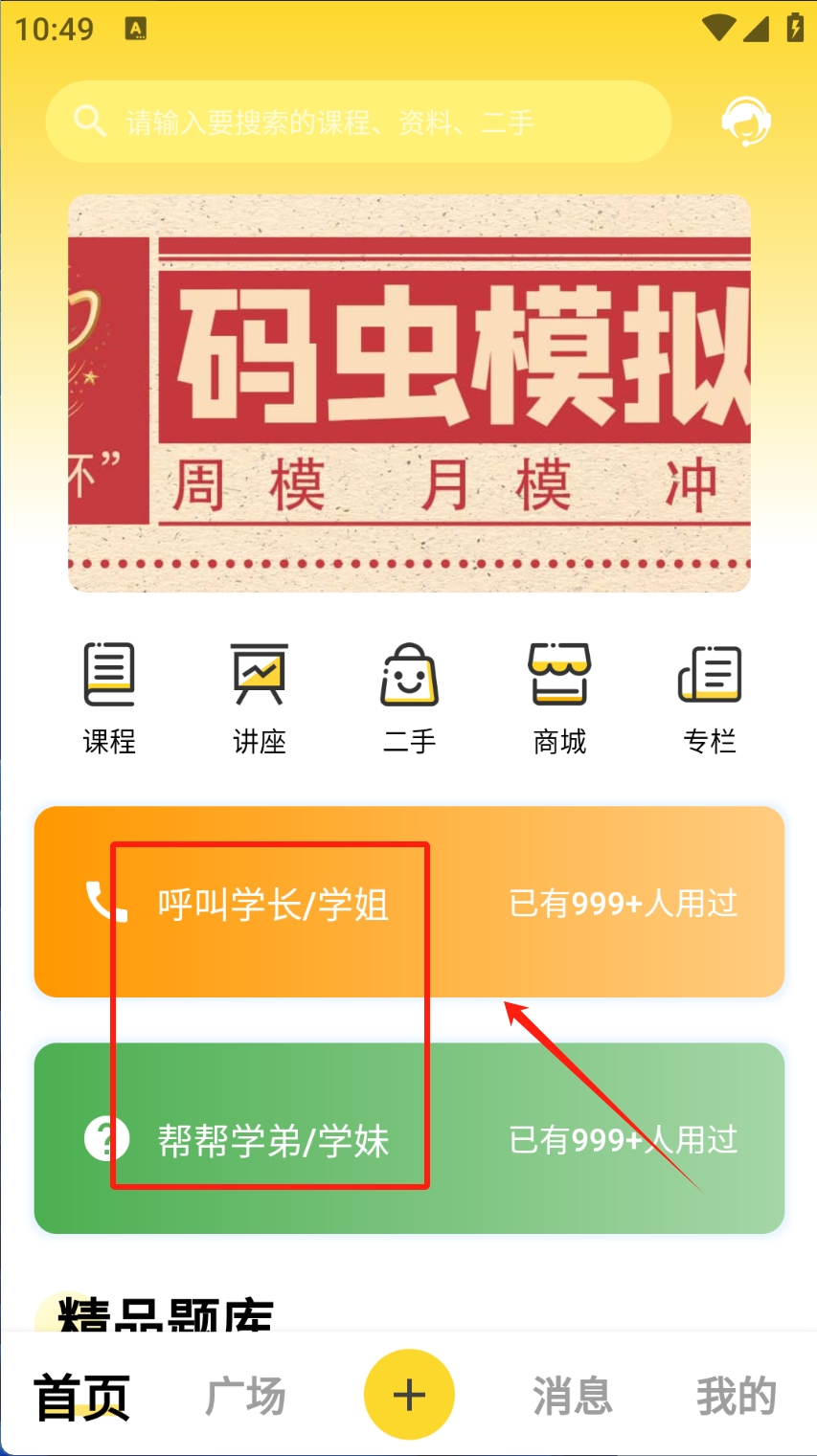 1、点击呼叫学长/学姐 寻求帮助和指导。