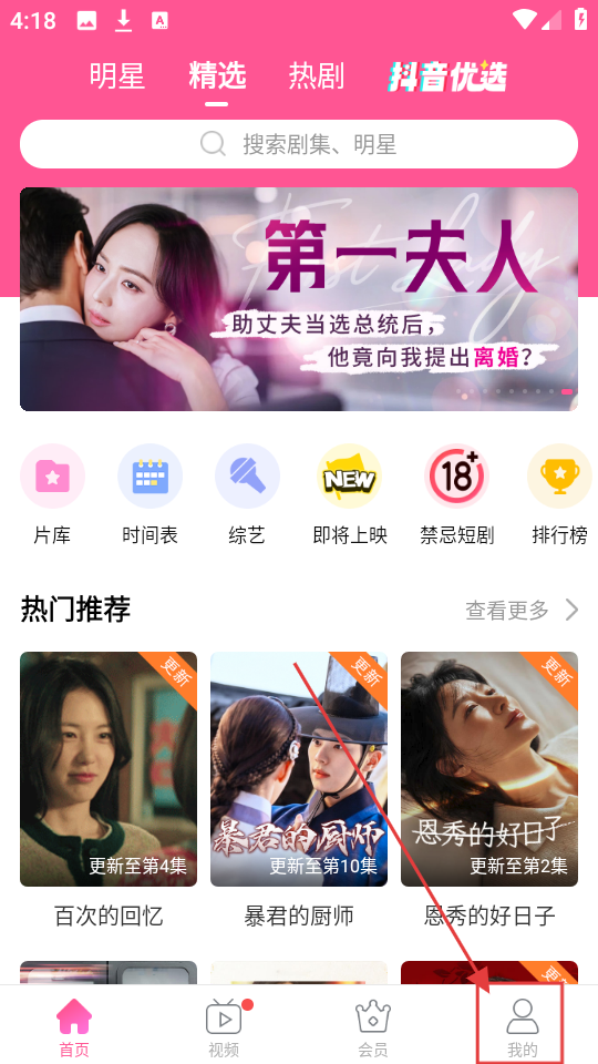 1、在应用首页,有各种分类和热门推荐内容,想开通会员的话,点击【我的】进入个人页面呀。