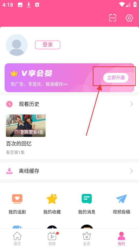 2、到了个人页面,能看到【V享会员】板块,点击【立即开通】,就可以进入会员开通界面啦。