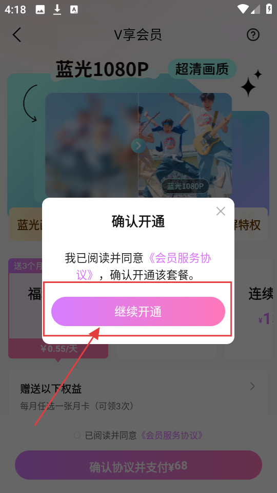 4、点击支付后,会弹出确认开通的窗口,点击【继续开通】,就能完成会员开通,享受会员权益啦。