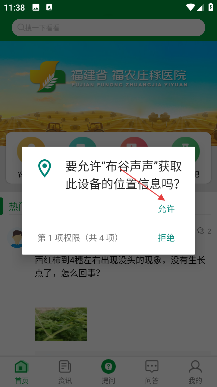 1、点【允许】,授权布谷声声获取设备位置信息,开启定位服务。