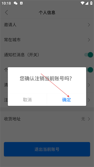 3、在个人信息页面,点击【注销账号】选项,弹出“您确认注销当前账号吗?”的确认弹窗。
