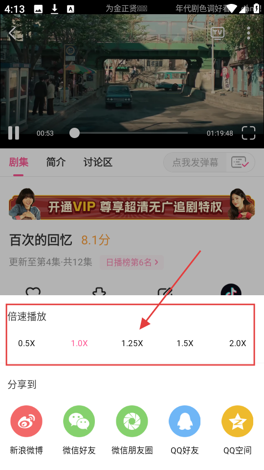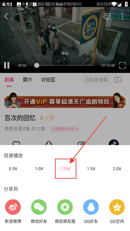 4、选好想要的倍速,比如【1.25X】,点击就能以该倍速播放剧集,看剧节奏由自己掌控啦。