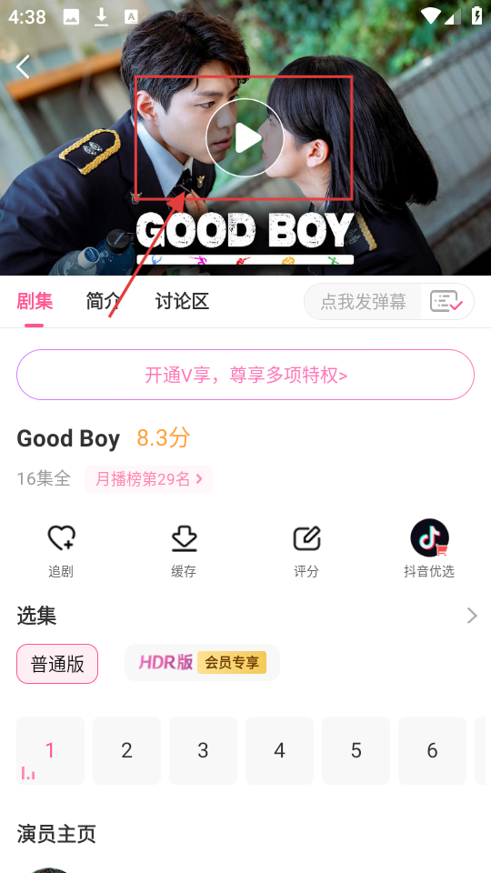 4、点开一部剧集,比如【GoodBoy】,点击播放按钮,就能开始观看剧集,享受追剧时光啦。