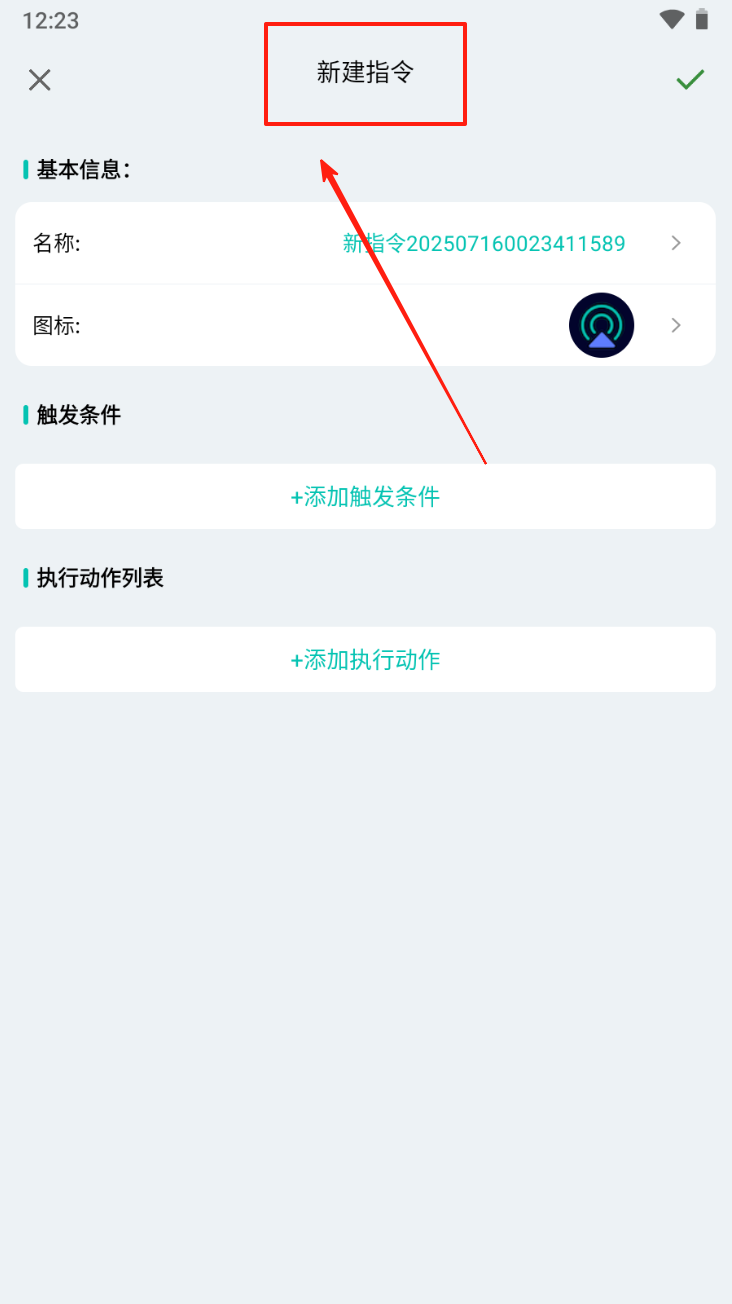 3、新建指令:点击“新建指令”按钮,设置指令名称和触发条件。